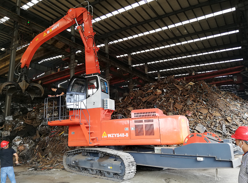 WZYS48-9雙動力抓料機適用于鋼廠料場裝卸廢鋼、裝卸火車皮物料、港口碼頭裝卸物料,廢鋼等,具有以下特點: